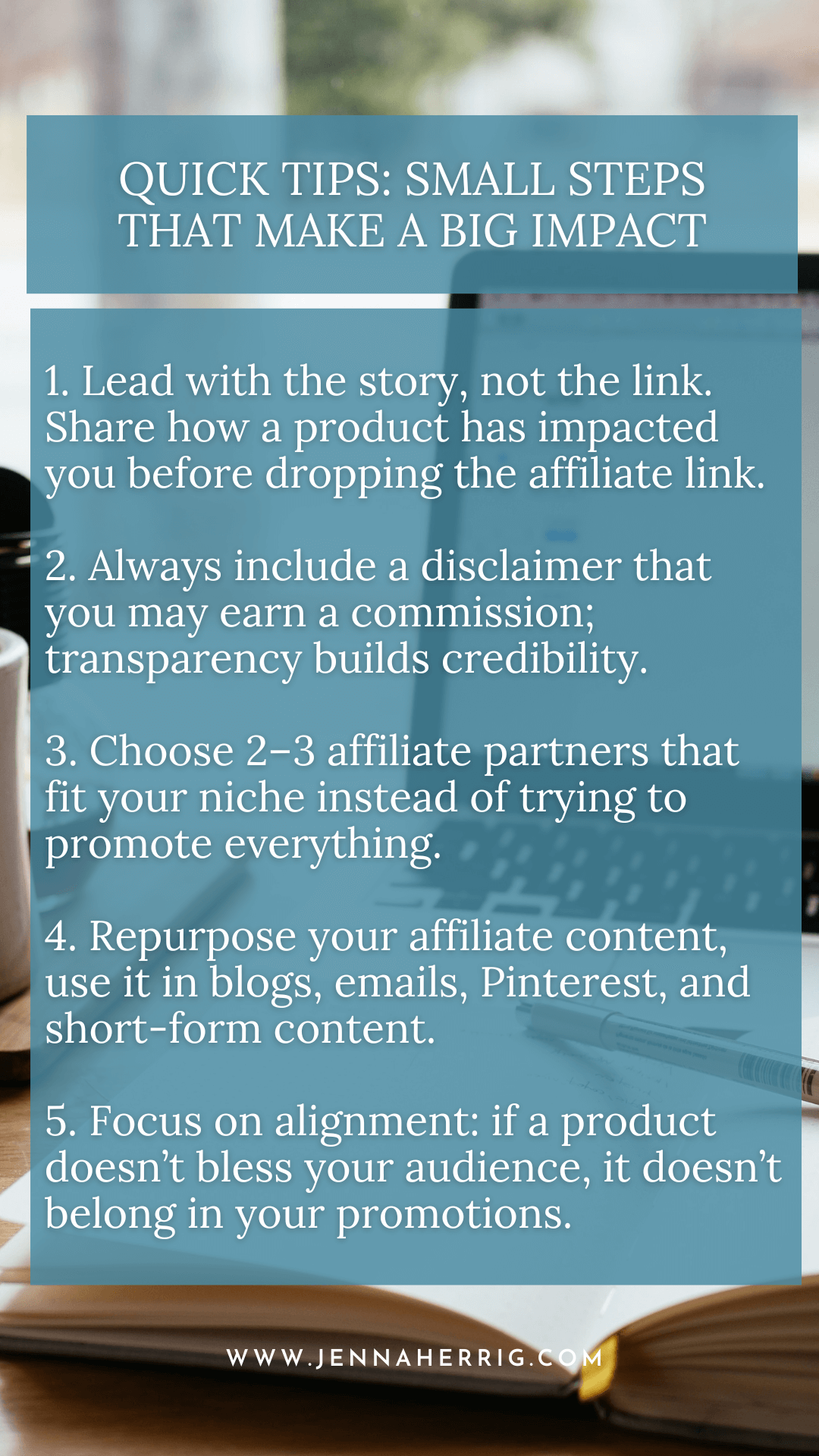 The next step? Choose one or two partnerships that feel aligned with your niche and begin sharing them naturally in your content. Start small, serve well, and trust that God can use even affiliate marketing as part of your calling.