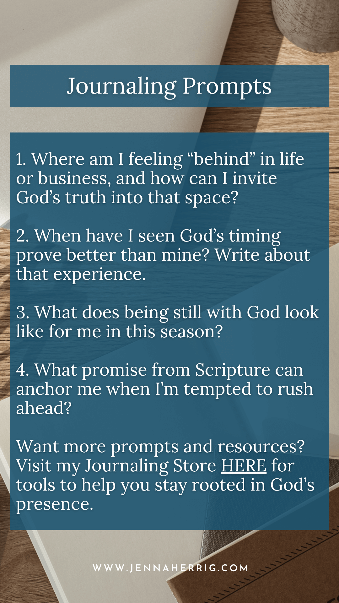 Have you ever felt like you're running out of time in growing your business and reaching the destination you think you should have already reached in your career? Maybe you’ve thought, “I should have figured this out by now,” or “I must have missed what God had for me.” As I approach my 39th birthday, I’ve caught myself wrestling with those very thoughts. There’s this sneaky lie that whispers, It’s too late. You’ve missed it. You should be further along by now. The truth is that God’s timeline is not like ours, not even remotely. What feels late to us is right on time to Him.