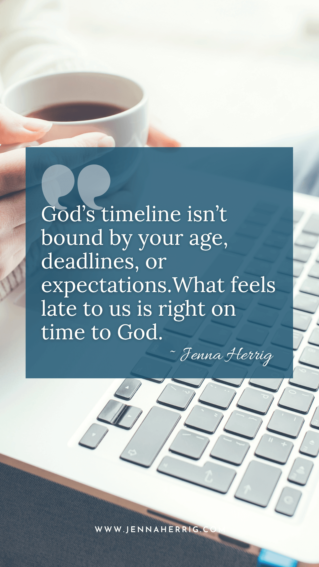 But God doesn’t operate on human deadlines. He is outside of time. God's plan for your life is not bound by your age, your timeline, or your expectations. In fact, Scripture is full of people who stepped into their calling later in life: