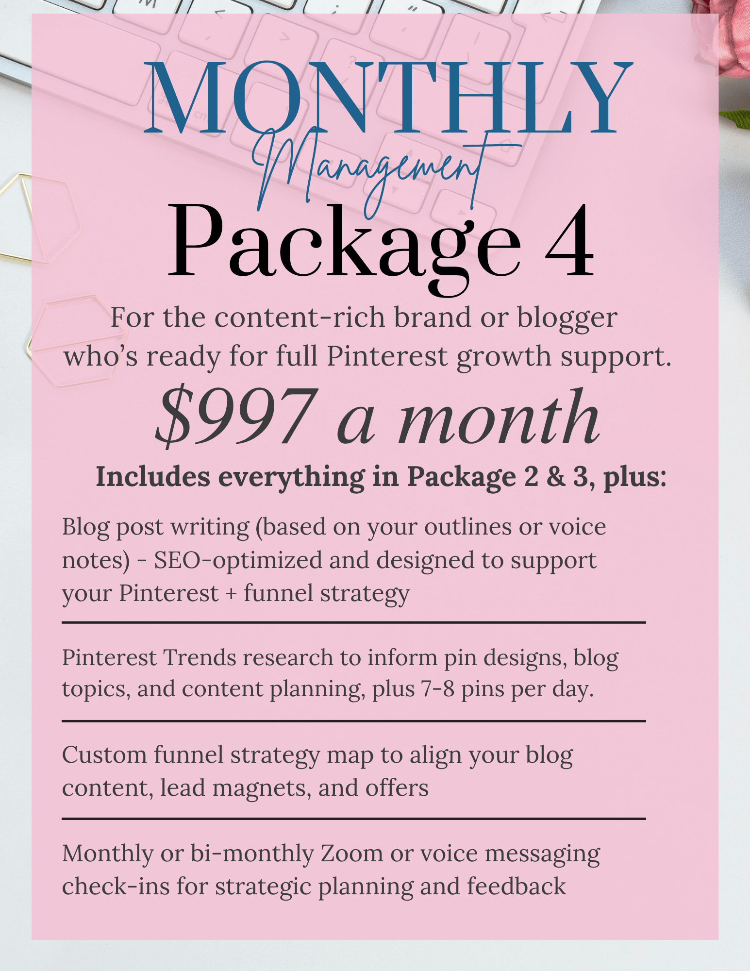 Not at all! I love working with what you already have. I can repurpose older blog posts, product pages, or content themes and give them new life through fresh Pin designs and strategic keywording. Pinterest is perfect for long-term content - it doesn’t expire after a day like other platforms.