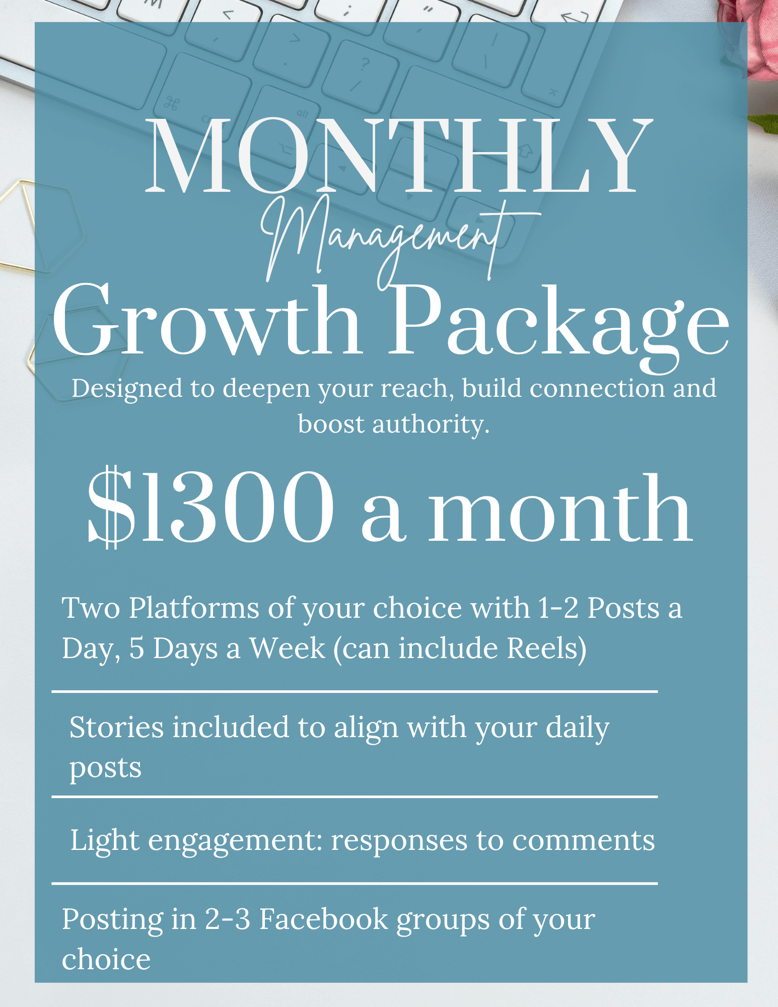 My role is to manage your social media strategy - not serve as a secretary or administrative assistant. I focus on creating, scheduling, and maintaining your online presence so your content connects and converts. You’ll still handle private messages, DMs, and day-to-day business management. This allows me to stay focused on content that helps your brand grow with purpose and clarity.